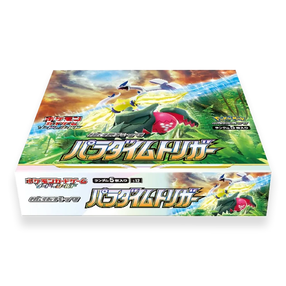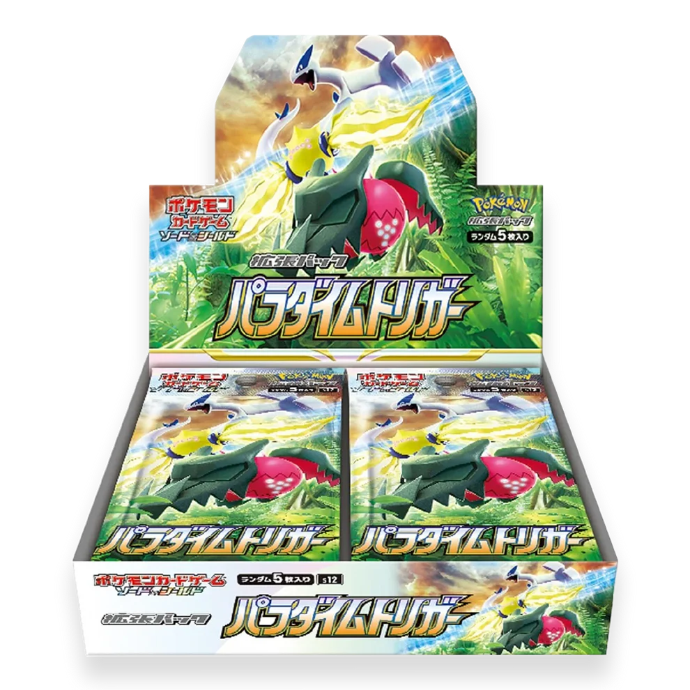 Paradigm Trigger (パラダイムトリガー) is a dynamic Japanese Sword & Shield subset that introduces the VSTAR Power Trainer mechanic for the first time. The set revolves around legacy Sinnoh and Unova Pokémon with futuristic designs, full-art illustrations, and a modernized Trainer toolkit, ideal for strategic decks and nostalgia-driven collectors alike.