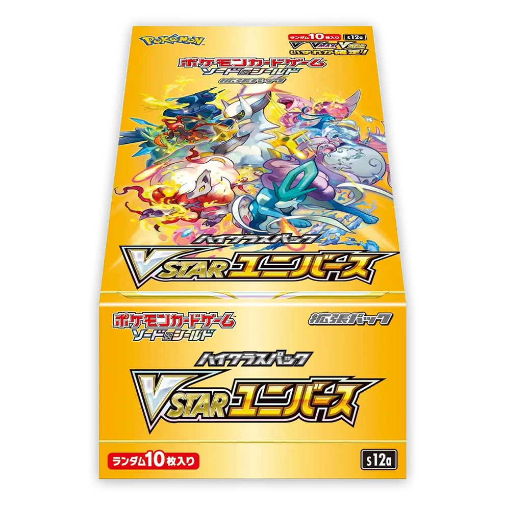 VSTAR Universe (VSTAR Universe) is the grand finale High-Class Pack release of the Sword & Shield era in Japan. This special set reprints favorite Pokémon V, VSTAR, and Full Art cards with exclusive Art Rare and Special Art Rare alternate art treatments, creating a premium collector experience to close the block.